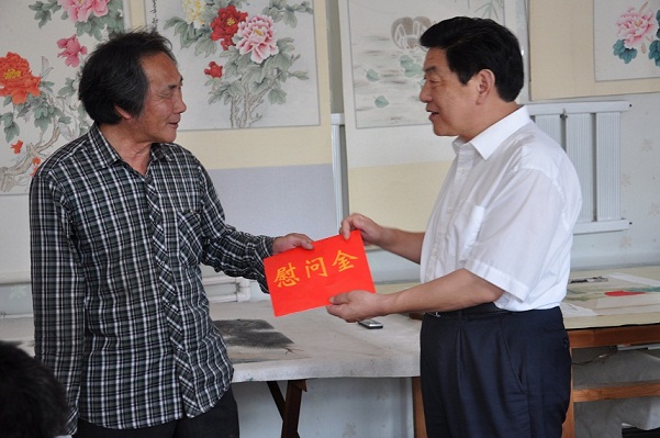 随后,董超又先后来到巨野县残疾人书画培训中心、山东省智力残疾儿童定点康复机构,为带领残疾人士走上就业路的代表们送去慰问金。