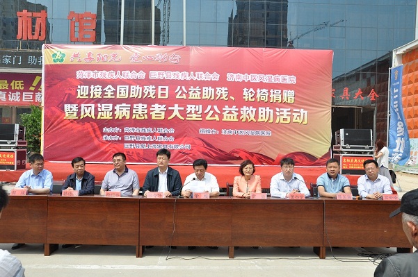 在第二十五个全国助残日到来之际,5月15日,由菏泽市残联主办、巨野县残联和巨野县新上海家具有限公司承办的“共享阳光 爱心助行”迎接全国助残日公益助残、轮椅捐赠暨风湿病患者大型公益救助活动在巨野举行,济南中医风湿病医院为100名贫困下肢残疾人捐赠轮椅。同时,菏泽市残联党组书记、理事长董超又向带领残疾人士走上就业路的代表们送去慰问金。