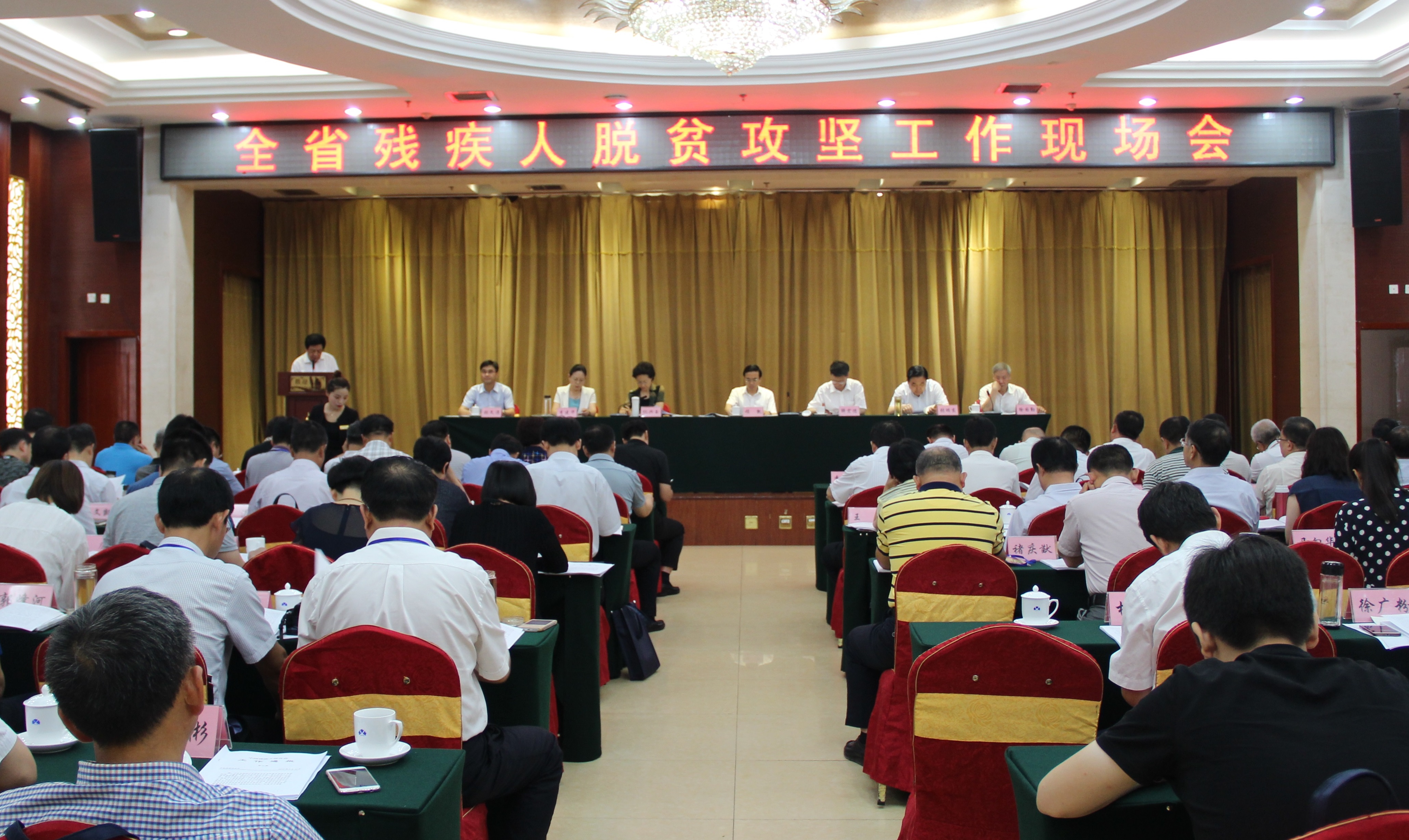 7月3日下午,为进一步推动落实全省残疾人脱贫攻坚工作,加快农村贫困残疾人脱贫进程,省残联、省扶贫办在菏泽召开全省残疾人脱贫攻坚工作现场会。中国残联副理事长程凯、中国残联扶贫办主任解宏德,省残联党组书记、理事长仉兴玉,省扶贫办副主任张瑞东,省残联副理事长徐国勤、张文涛参加了会议。市委副书记李建华到会致辞。全省17个地市的残联理事长及负责扶贫工作的部室负责人、20个脱贫任务较重的县(市、区)残联理事长参加了现场会。辽宁、福建、广东、山东四省残联分管同志作为特邀代表参加了会议。全省17个地市以及辽宁、福建、广东、山东四省的代表现场观摩了我市残疾人电商创业和扶贫车间开展情况。